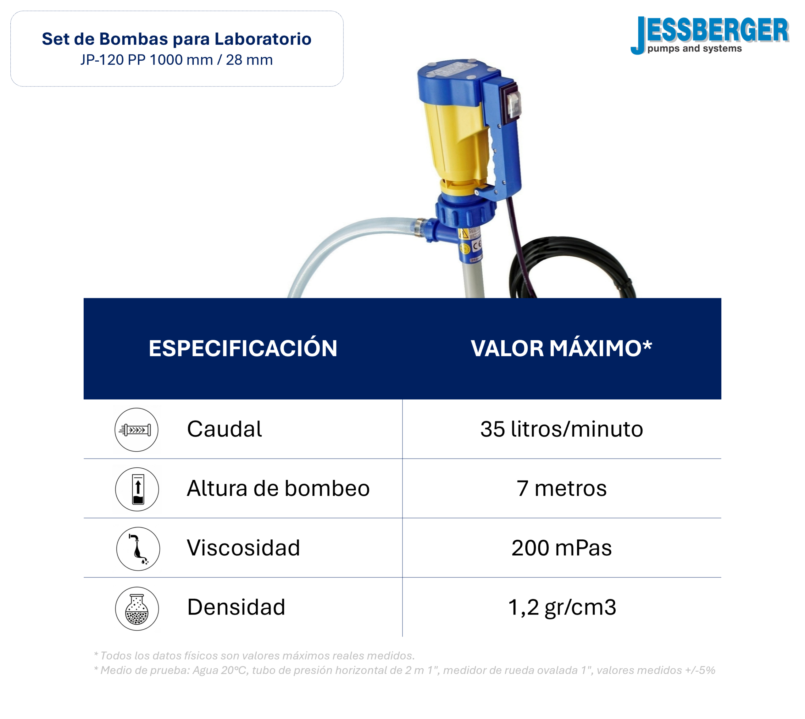 Medio de prueba: Agua 20°C, tubo de presión horizontal de 2 m 1″, medidor de rueda ovalada 1″, valores medidos +/-5%.