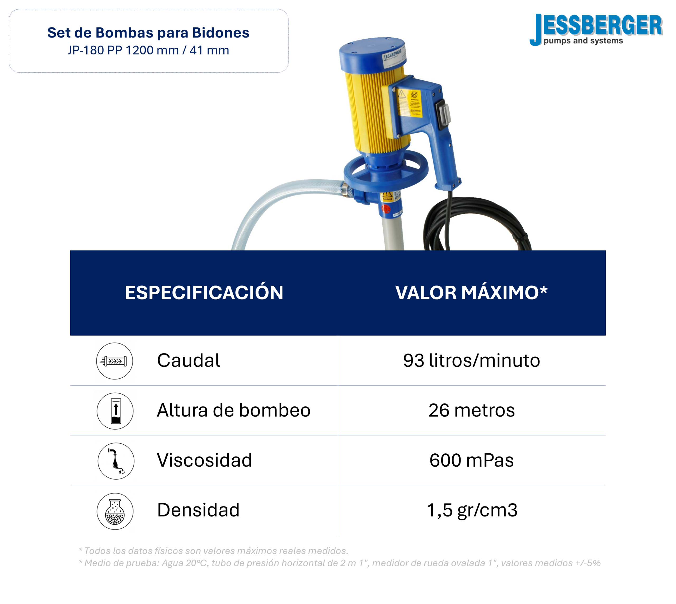 Todos los datos físicos son valores máximos reales medidos.