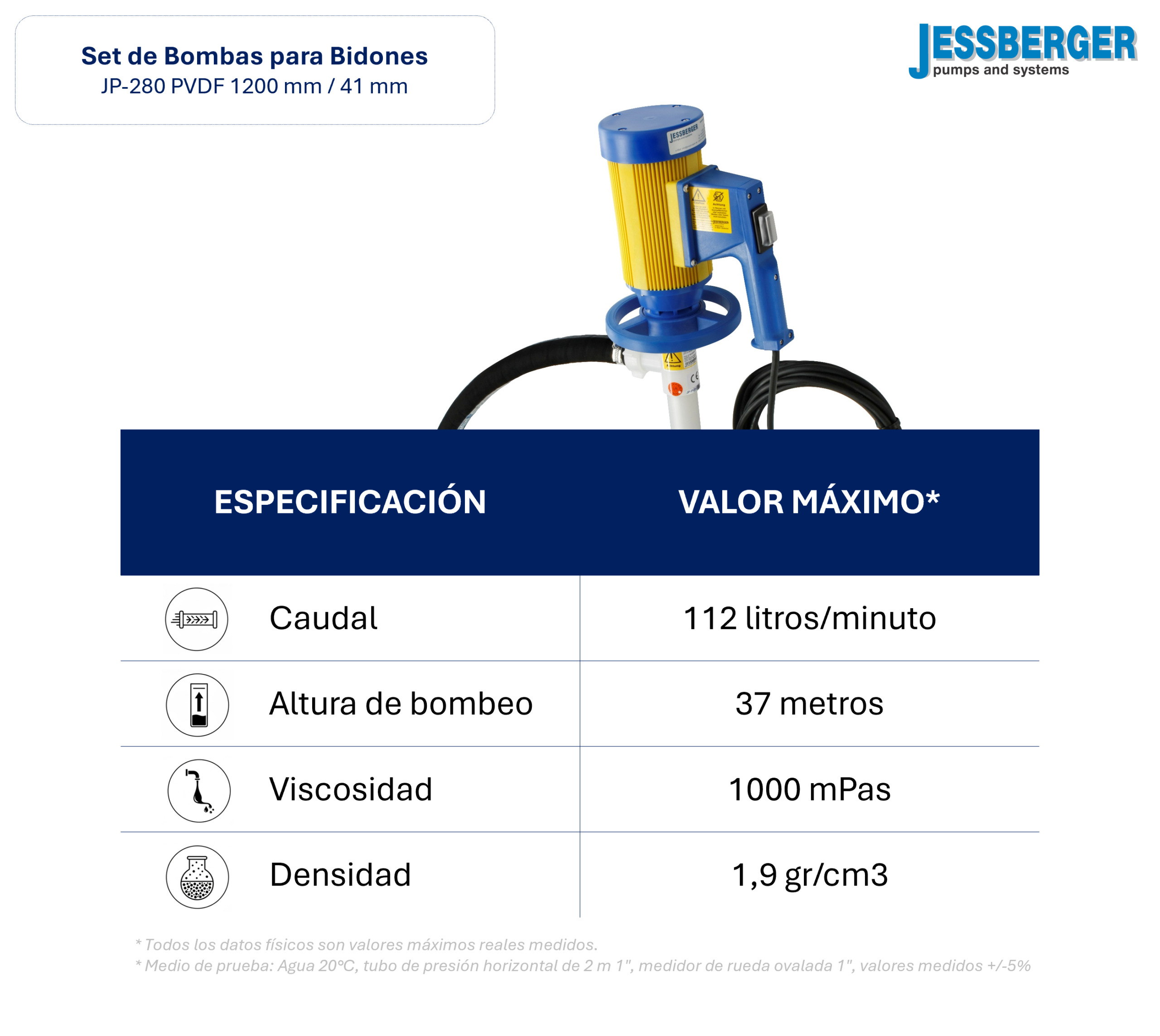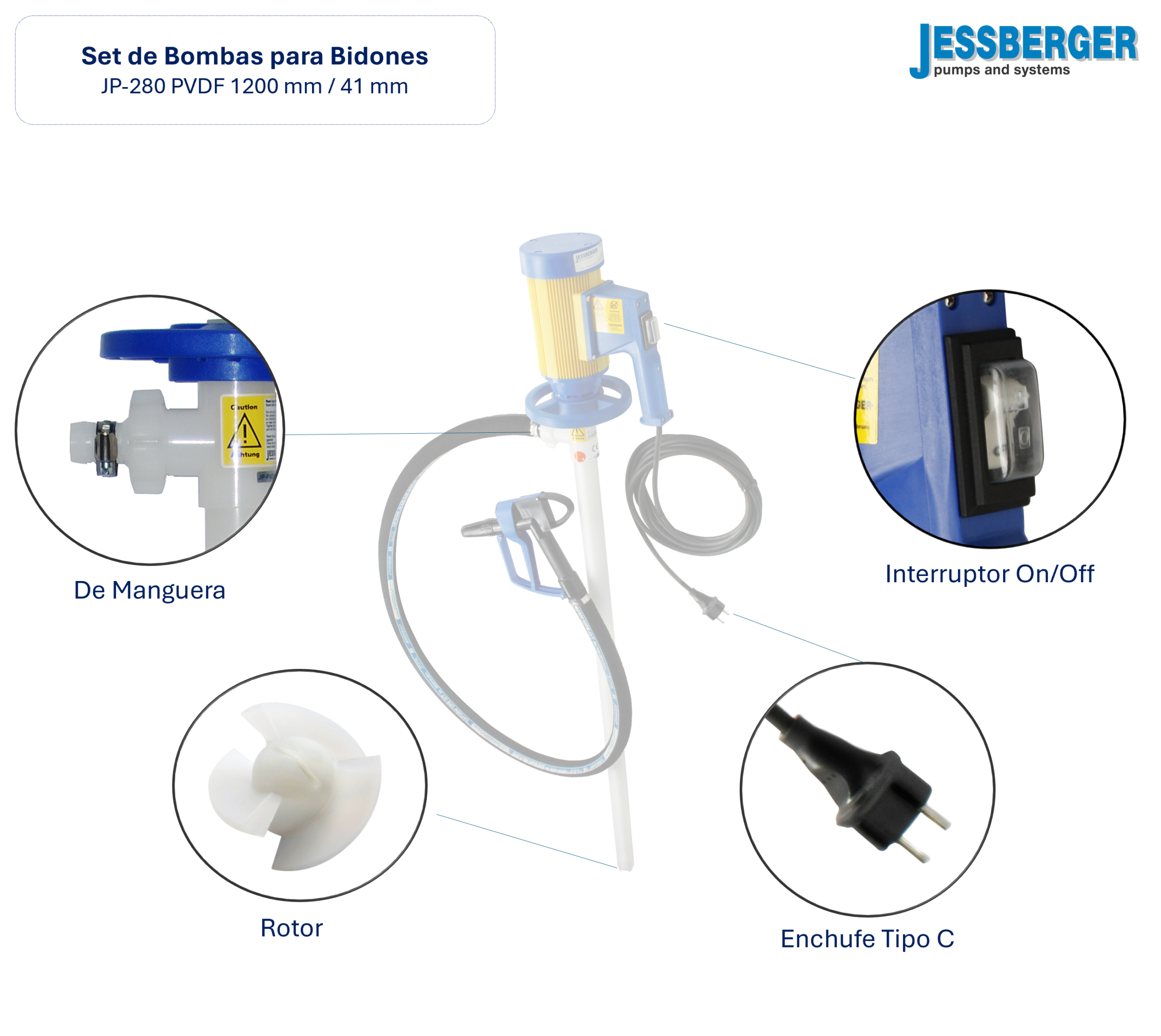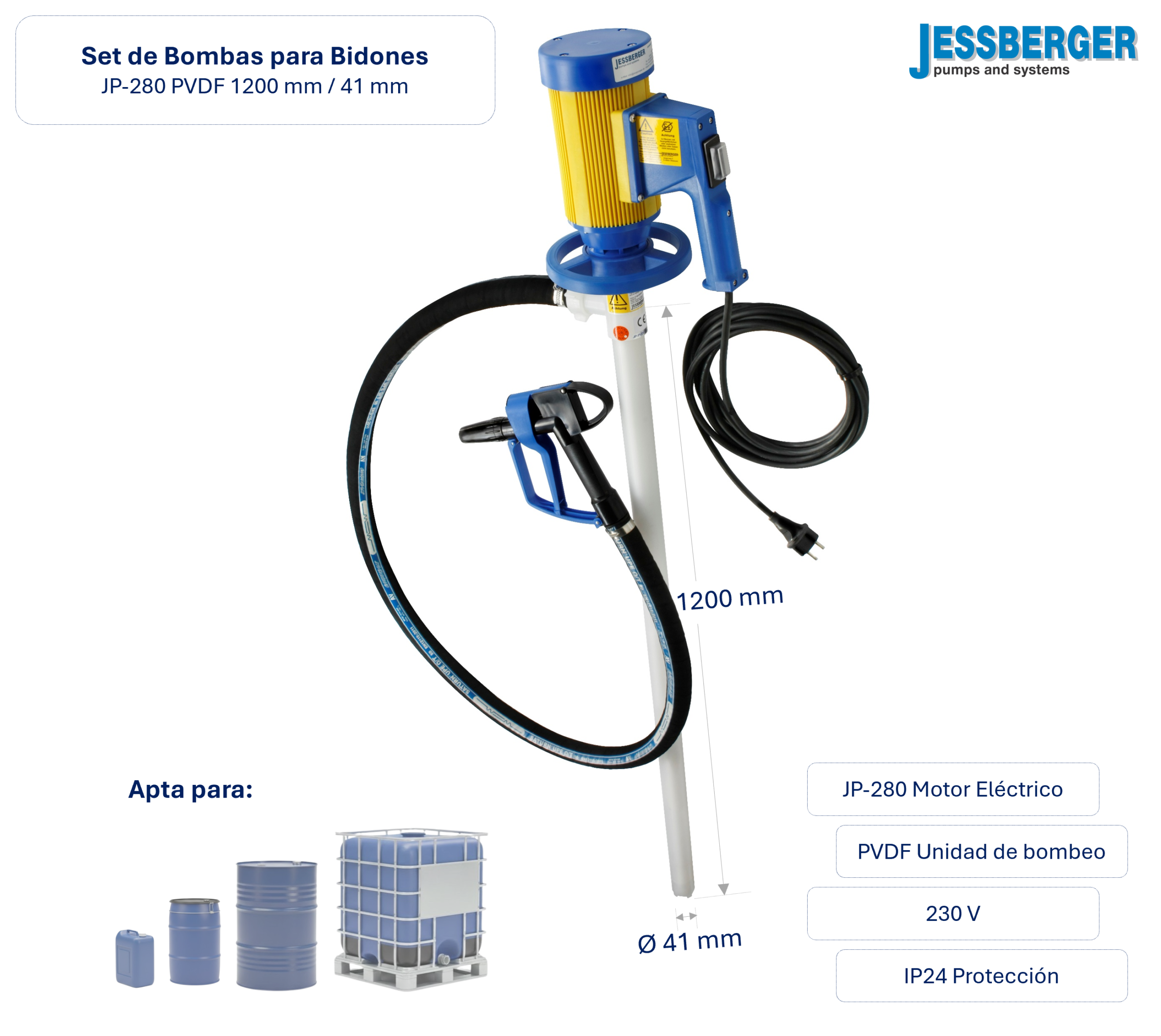 Bomba para bidones con motor eléctrico para ácidos y bases altamente agresivos