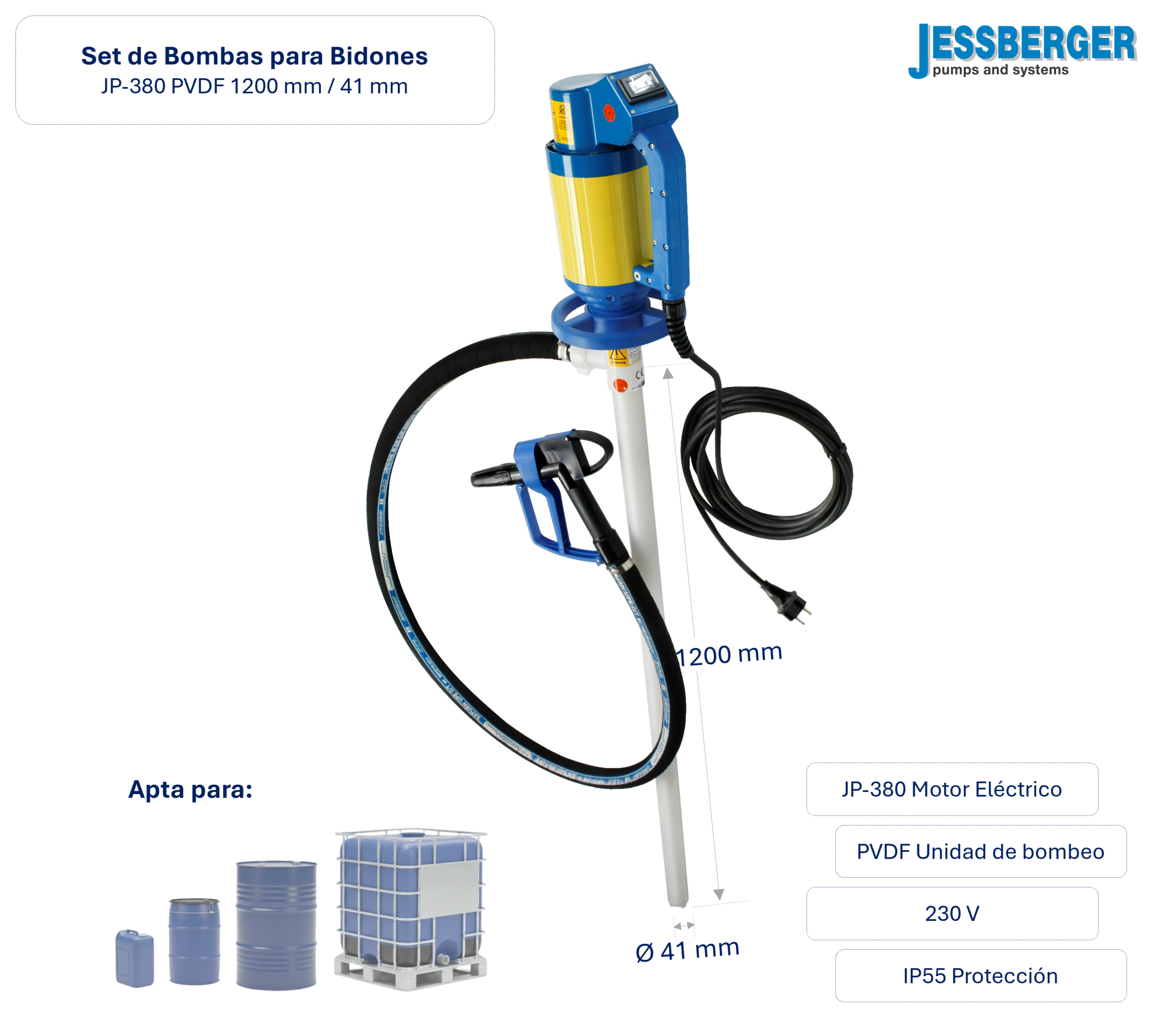 Set de bomba para bidones con motor eléctrico para medios neutros y agresivos