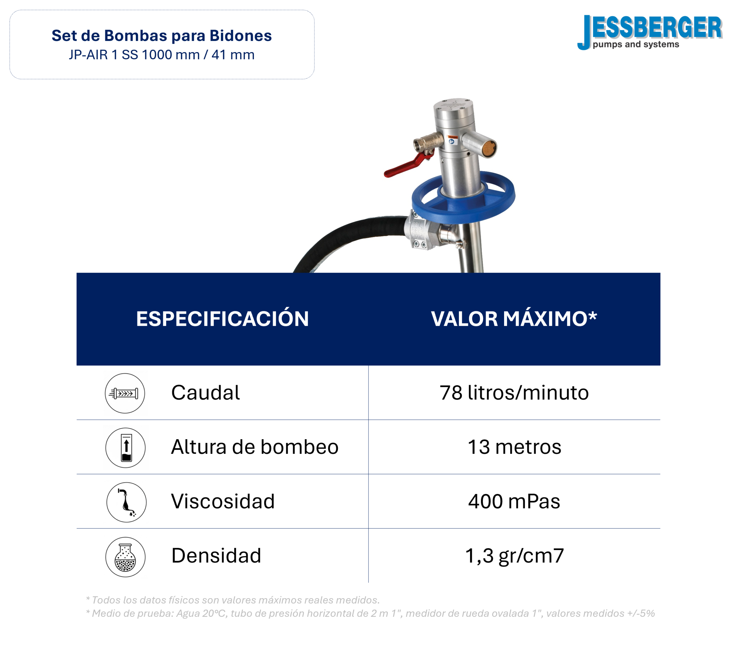 Medio de prueba: Agua 20°C, tubo de presión horizontal de 2 m 1″, medidor de rueda ovalada 1″, valores medidos +/-5%.